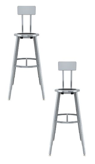 (2 Pack) NPS® 30-38" Height Adjustable Titan Stool with Backrest, Black Steel Seat, Grey Frame