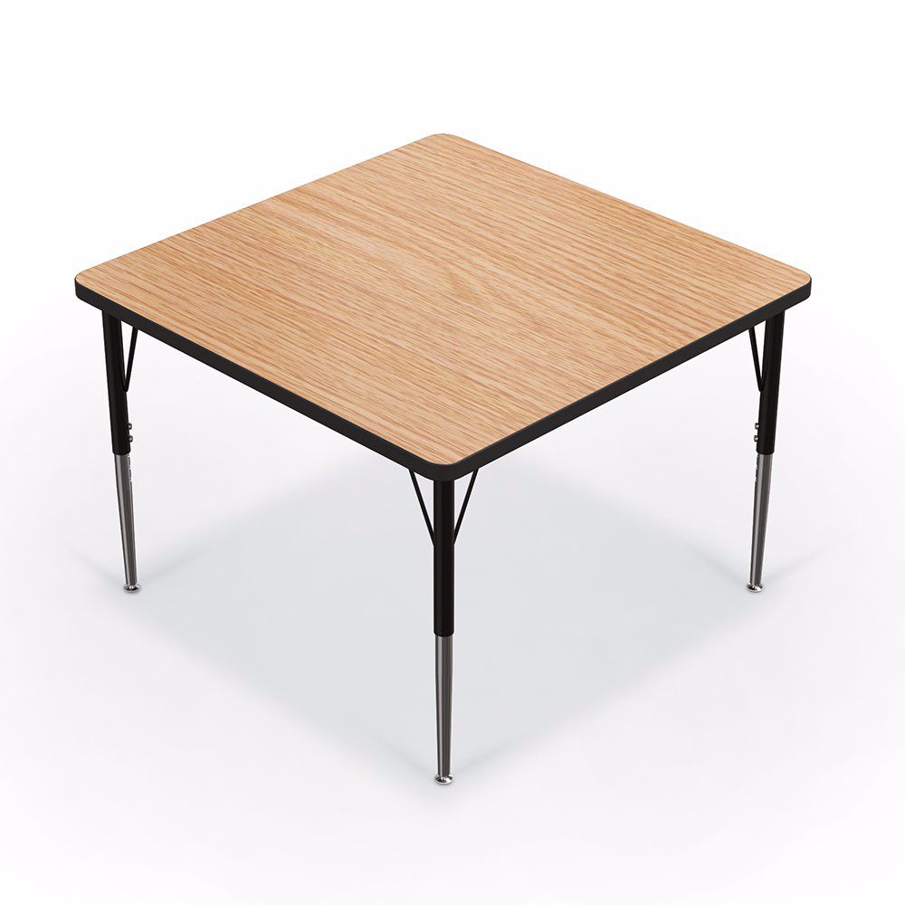 The Activity Tables bring simplicity and functionality in a package made to fit any classroom or study setting. Desks offer quick and easy assembly and height adjustability from 22" to 29". Top available in multiple HPL surfaces with black edgebanding and adjustable powder-coated black steel leg. Legs feature swivel glides. Edgebanded HPL tops are (Legs are imported). Limited lifetime warranty.