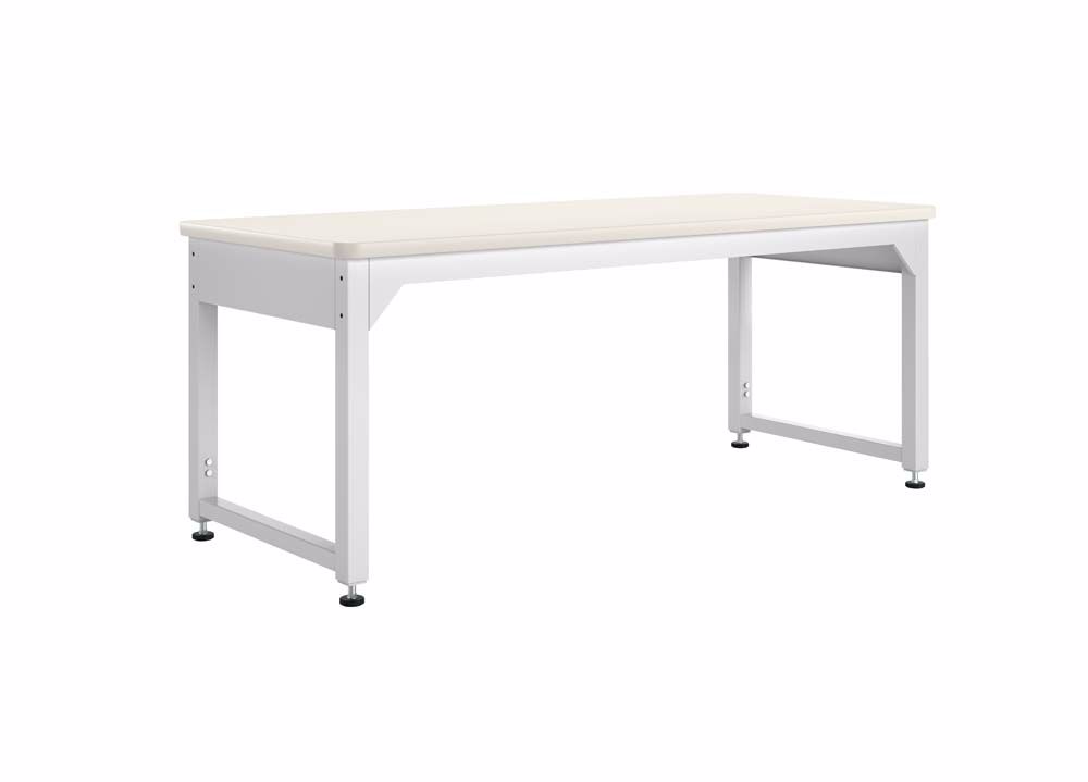Flexibility is the key component of this workbench. The bench is perfect for Makerspaces and Fab-Labs. It can be adjusted in height from 25-1/2”H to 35-1/2”H. Add an additional 4” to the height by adding the optional 4” locking casters. The legs and frame are made of 18 gauge steel. The steel base is finished with a gray baked enamel finish. The static weight capacity is 1500 lbs. without casters and 1200 lbs. with casters added, proving just what a work horse this bench is! Top Surface: 1-1/4" Almond Plastic Laminate, Overall Size: 72"W x 30"D x 25.5"- 35.5"H