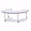 Children can center around an educator easily with horseshoe tables. Accommodates up to 9 chairs. The legs adjust from 20” to 31” high, are 2” thick, and feature heavy-duty casters. Freckled gray tabletop with navy TRUEdge, gray legs, and gray casters.
