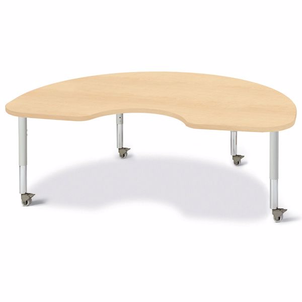 Educators can easily interact with individual children without disturbing others with Kidney Tables. Accommodates up to 5 chairs. The legs feature glides that reduce noise, prevent snags, and don’t rust. Oak tabletop with black TRUEdge and black legs.