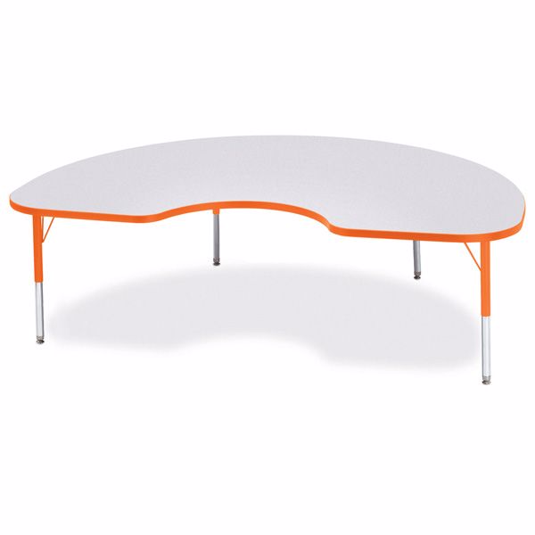 Educators can easily interact with individual children without disturbing others with Kidney Tables. Accommodates up to 9 chairs. The legs feature glides that reduce noise, prevent snags, and don’t rust. Freckled gray tabletop with orange TRUEdge and oran