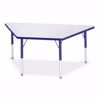 Great for students of any age, multiple trapezoid tables can be arranged in many configurations to accommodate any space. Accommodates up to 5 chairs. The legs adjust from 20” to 31” high, are 2” thick, and feature heavy-duty casters. Freckled gray tablet