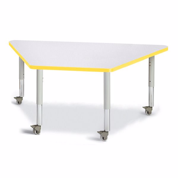Berries® Trapezoid Activity Tables - 30" X 60", Mobile - Gray/Yellow/Gray