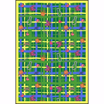 Put the crowning touch on your little princess's bedroom with this charming carpet. Pearl necklaces, ballet slippers, crowns and flowers will adorn her chambers as she holds court in her own cozy castle.