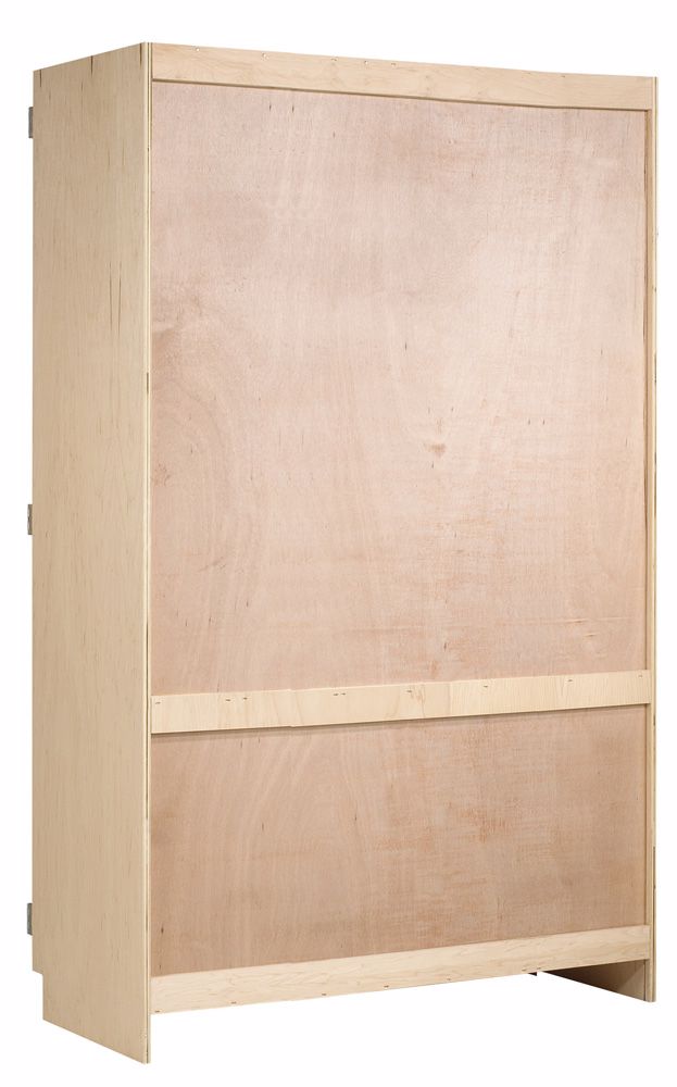 Hold all your key drawing supplies in one place. This plywood and maple hardwood cabinet is built to hold T-squares, 18" x 24" drawing boards and other supplies for either 24 or 36 students. The 3-point locking handles protect the items from theft. An upper shelf provides a place to store extra materials such as paper and books. The eight totes provide space to put compass-as, triangles, and other drawing supplies. Can be ordered with or without tools. Overall size: 22"D x 84"H.