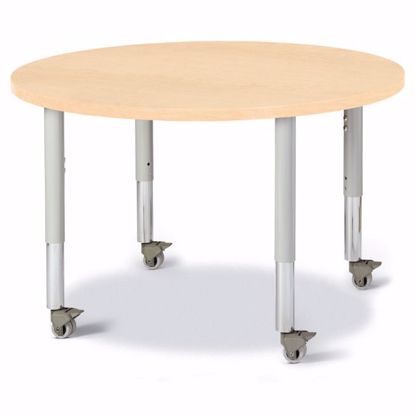 These round tables are excellent for allowing children to interact with each other during projects. Accommodates up to 4 chairs. The legs adjust from 20” to 31” high, are 2” thick, and feature heavy-duty casters. Maple tabletop with maple TRUEdge, gray le