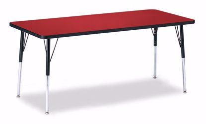 The perfect table for any occasion. Accommodates up to 10 chairs. The legs adjust from 20” to 31” high, are 2” thick, and feature heavy-duty casters. Red tabletop with black TRUEdge, black legs, and black casters.