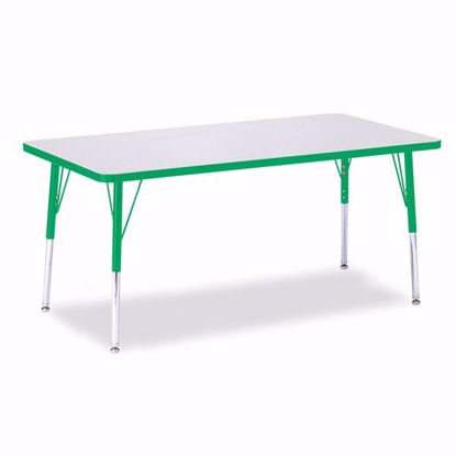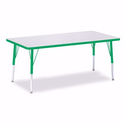 The perfect table for any occasion. Accommodates up to 8 chairs. The legs adjust from 20” to 31” high, are 2” thick, and feature heavy-duty casters. Freckled gray tabletop with green TRUEdge, gray legs, and gray casters.