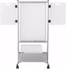 Get the most out of your mobile compact whiteboard with the Expanding Nest Easel. Double sided in porcelain or Dura-Rite HPL dry erase surface, this versatile easel will keep your group interactions and meetings organized and fun. • Main surface (40.75"H x 28.75"W) includes accessory tray and flip chart hooks on each side. • Optional melamine side panels give you extra room for notes or ideas. Available individually or in a set of four. Each measures 23"H x 15"W and hooks easily to the frame. • Easel can be set to 65" or 72" high and includes a handy perforated storage box and 2" locking casters. Nests for easy transport and compact storage when not in use. • Has achieved GREENGUARD GOLD Certification.