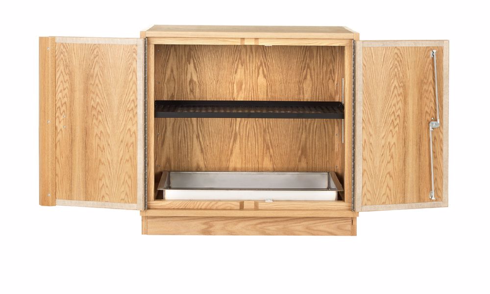 Keep all of your flammable liquids safe in the Flammable Liquid Storage Cabinet. This storage cabinet is made up of 1" thick exterior grade plywood with 1-1/2" x 3/4" hard wood strips that are dadoed into the 1" interiors to create a seal. It features a 3" high drip tray in case of a leak, the metal adjustable shelf is designed to let the spill contain in the center of the drip pan. This cabinet meets or exceeds NFPA30 and is UL1275 standard certified. Choose from either two doors or single door options. Cabinet comes in a Northwood’s UV finish and has a 3-point key lock.