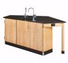 This popular workstation meets the needs of students and teachers today. The ForwardVision™ 4-Student Workstation allows four students to work at a single station while all are facing the teacher. The unique design leaves enough room to store four stools (not included) under the workstation. Sink units come with two combination cold water/gas fixtures. The 2916KLH and 2936KLH include two rod sockets and LabHands for holding laptop computers and books. All the units come with two GFI electrical outlets, and ample storage. Choose from two models of cabinets: Door cabinet with two adjustable shelves or the door/drawer cabinet with one adjustable shelf and a drawer. The stations are finished with a chemical resistant, earth-friendly UV finish. All doors and drawers lock. Dimensions: 96"W x 50"D x 36"H.