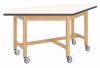 Designed by taking our most popular work station and making it into a mobile table. This new table provides flexibility in the classroom by reconfiguring your space! Legs and aprons are constructed of maple veneer and is 13/16”D x 4-1/2”H with heavy-duty, 13 gauge steel corner braces, 2-1/4” square legs with 5/16” hanger bolts installed, are attached to apron with nuts and washers supplied. The Forward Vision tables are equipped with locking casters. Top Surface: 3/4” Phenolic, Overall size: 84" X 44" X 36"