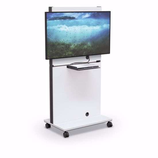 Sleek and stylish MediaSpace Flat Panel Cart provides safe and easy flat panel mobility while adding modern elegance to any multimedia environment, with durable design, materials, and versatile storage options. Keep cables under control with wiring channel in main pillar and multiple grommets, keeping the appearance clean and minimalist. Four casters provide easy mobility and lock for stability.