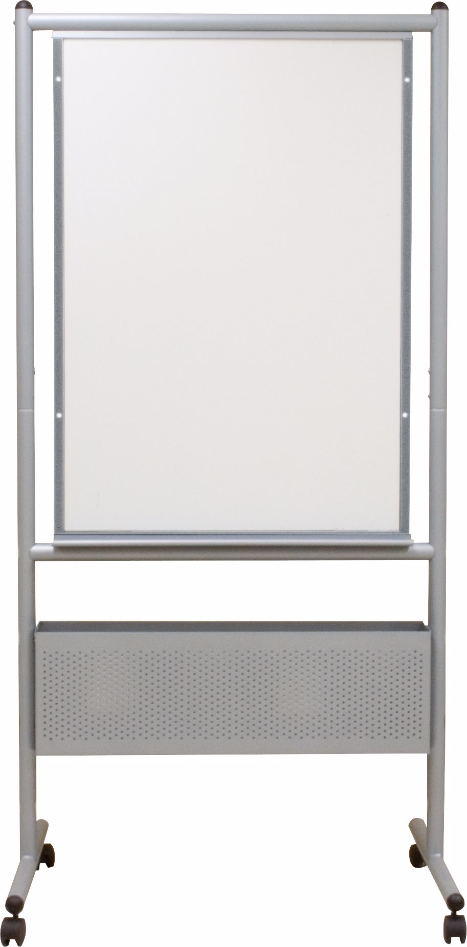 - Available with silver or black powder-coated steel frame, and a double-sided dry erase whiteboard in either magnetic or laminate finishes.