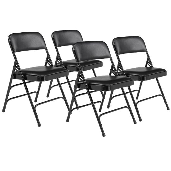 NPS® 1300 Series Premium Vinyl Upholstered Triple Brace Double Hinge Folding Chair, Black (Pack of 4)