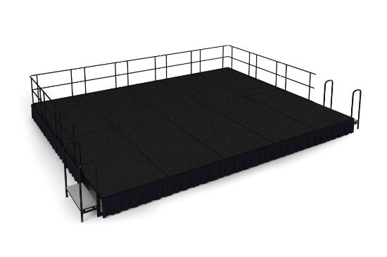 NPS® 16' x 20' Stage Package, 16" Height, Black Carpet, Shirred Pleat Black Skirting