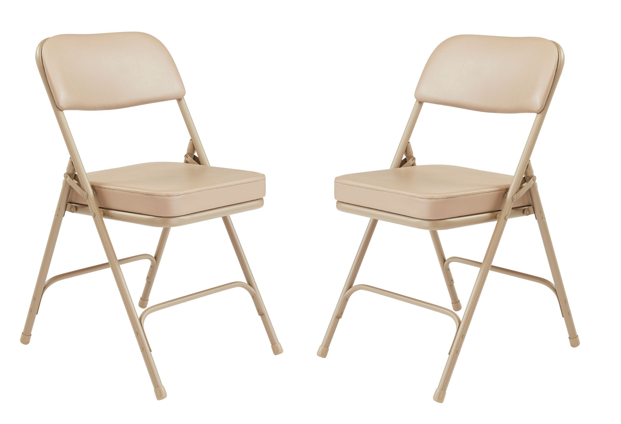 NPS® 3200 Series Premium 2" Vinyl Upholstered Double Hinge Folding Chair, Beige (Pack of 2)
