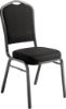 The 9300 Silhouette stack chair is durable and classy enough to use in your busiest social setting, be it a dining room or corporate banquet hall. It features a strong square 18-gauge steel frame plus an under-seat H-shaped brace for extra support. The seat features supremely comfortable and spacious 2"-thick high-density foam padding with institutional grade vinyl upholstery or fabric, and a waterfall-style edge. MDF core within both the seat and crown-style backrest which has a built-in handle for easy moving and stacking. Fortifying stacking bars and twelve plastic bumpers protect the powder-coated paint finish from scratches when the chair is stacked (up to ten units high.)