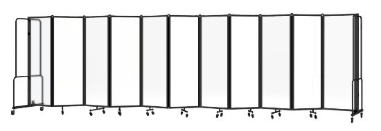NPS® Room Divider, 6' Height, 11 Sections, Frosted Panels, Black Frame
