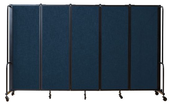 NPS® Room Divider, 6' Height, 5 Sections, Blue Panels and Black Frame