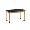 The NPS SLT Signature Frame Science Lab Tables have "perfect chemistry" with any science classroom. These paragons of endurance are built with a choice of stylistic light oak woodgrain, or striking textured black legs beneath a "Chem-Res" tabletop with a MDF Core. The work surface is of solid black, firmly secured, high-pressure laminate, resistant to water and 13 commonly-used laboratory chemicals. Robust legs are 2 3/8” diameter, and adjust smoothly in ¾” increments from 27”-42”. Legs automatically lock at your height setting to conveniently accommodate all seating requirements. Easily assemble the SLT-AH thanks to pre-drilled pilot holes. Feet are outfitted with oversized glides, or optional casters. The SLT-AH meets MAS Certified Green environmental industrial standards. Optional Book Compartment models come with two storage compartments concealable with the included side-panel aprons.