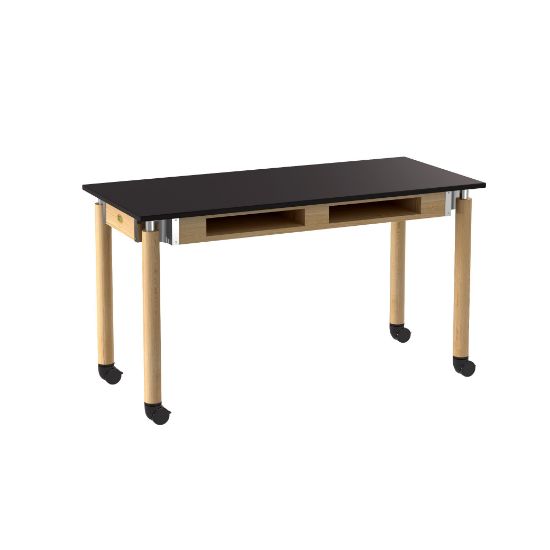 NPS® Signature Science Lab Table, Oak, 24 x 54, Phenolic Top, Book Compartments and Casters