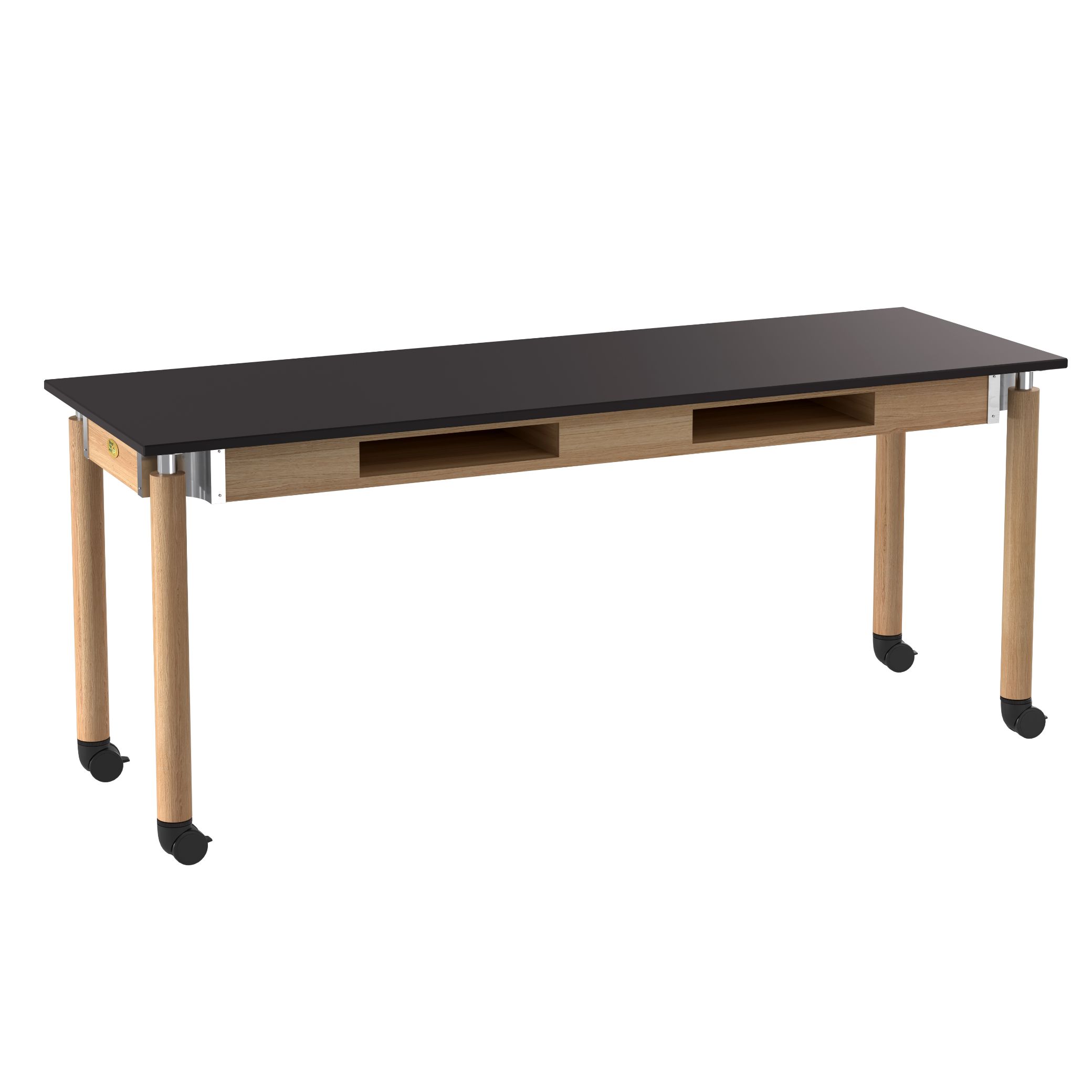 NPS® Signature Science Lab Table, Oak, 24 x 72, Chemical Resistant Top, Book Compartments and Casters