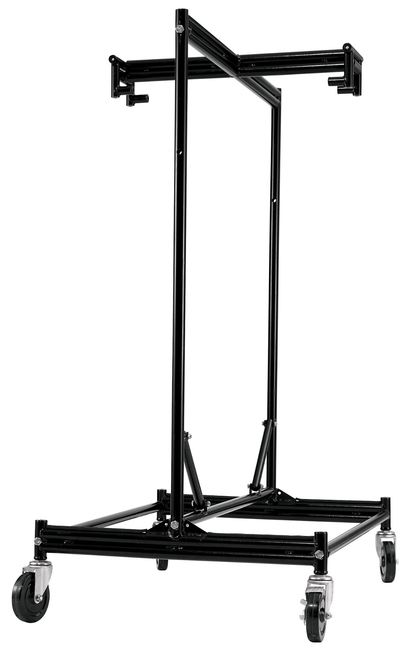 The NPS Stage Dolly lets you store and move up to six 3' or 4' wide stages and seated riser platforms without worry. The substantial frame is made from 14-gauge tubular steel with a black powder-coated finish. Users can easily maneuver even full loads with on the four hard rubber 6" swiveling casters, each with a weight capacity of 325 lbs. for a total weight capacity of 1300 lbs. A built-in latch secures the stages to the dolly to prevent tipping during transport.