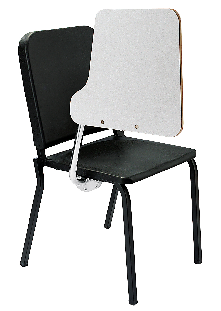 Removable left Tablet Arm for the 8200 Series Melody stack chair. Grey nebula laminate surface with plywood core conveniently flips up and folds neatly behind the chair.