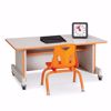 This desk can be adjusted in two-inch increments accommodating pre-school students through adults. Grommet and fully enclosed back help hide unsightly cords and wires. Storage shelf under E-Z to clean laminate top provides space for computer accessories.