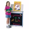 A Big Book language enrichment station on wheels! Easel folds down over storage space when not in use. Flannel front for adding to your story. Vertical big book partitions in back for storing a multitude of books. Overall approximately 43" high.