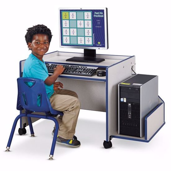 Just the right size for early learners with an adaptable keyboard shelf that adjusts from 15.5" to 21.5" high. Side grommets and fully enclosed back manage and protect cords. Desktop is 22" high. Compatible with Rainbow Accents® Discovery CPU Booth.