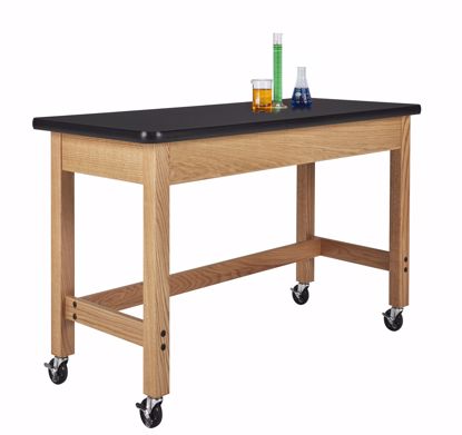 Plain Apron Tables are available in a variety of sizes, with several different top materials. These tables are built for years of dependable service. Legs and aprons are constructed of solid red oak, and are smoothly machined. They are finished with a chemical resistant, earth-friendly UV finish. Aprons are constructed of solid red oak and are 13/16"Dx4-1/2"H with heavy-duty 13-gauge steel corner braces. 2-1/4" square solid oak legs, with 5/16" hanger bolts installed, are attached to apron with nuts and washers supplied. All tables are equipped with non-skid adjustable glides for precise leveling and for prevention of rocking on uneven floors. Tables are supplied with black rubber leg boots which offer protection against scuffing and chemical spills. Standard table height is 30" with a weight capacity of 500 lbs. (Shipped KD with tops attached)