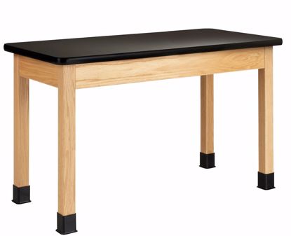 Plain Apron Tables are available in a variety of sizes, with several different top materials. These tables are built for years of dependable service. Legs and aprons are constructed of solid red oak, and are smoothly machined. They are finished with a chemical resistant, earth-friendly UV finish. Aprons are constructed of solid red oak and are 13/16"Dx4-1/2"H with heavy-duty 13-gauge steel corner braces. 2-1/4" square solid oak legs, with 5/16" hanger bolts installed, are attached to apron with nuts and washers supplied. All tables are equipped with non-skid adjustable glides for precise leveling and for prevention of rocking on uneven floors. Tables are supplied with black rubber leg boots which offer protection against scuffing and chemical spills. Standard table height is 30" with a weight capacity of 500 lbs. (Shipped KD with tops attached)