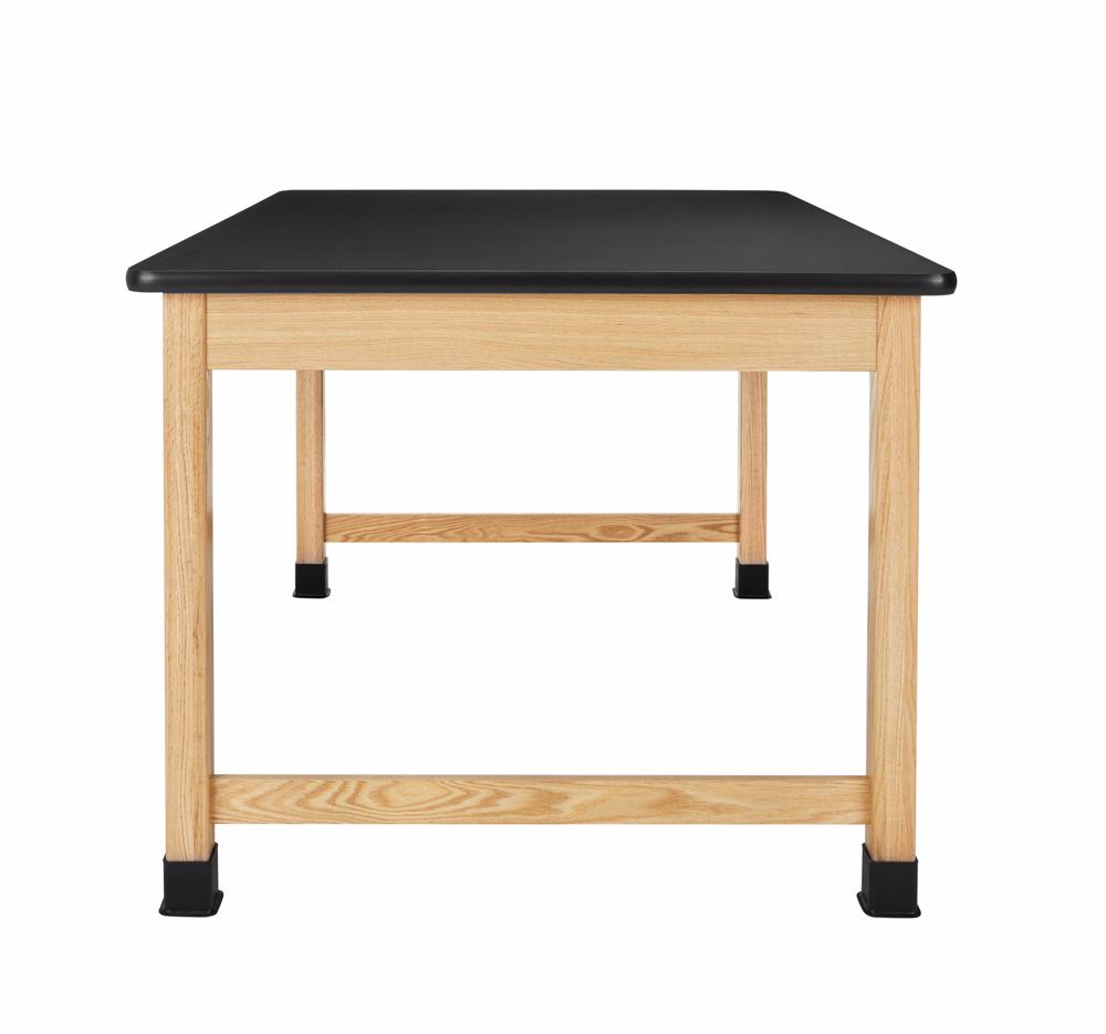 Plain Apron Tables are available in a variety of sizes, with several different top materials. These tables are built for years of dependable service. Legs and aprons are constructed of solid red oak, and are smoothly machined. They are finished with a chemical resistant, earth-friendly UV finish. Aprons are constructed of solid red oak and are 13/16"Dx4-1/2"H with heavy-duty 13-gauge steel corner braces. 2-1/4" square solid oak legs, with 5/16" hanger bolts installed, are attached to apron with nuts and washers supplied. All tables are equipped with non-skid adjustable glides for precise leveling and for prevention of rocking on uneven floors. Tables are supplied with black rubber leg boots which offer protection against scuffing and chemical spills. Standard table height is 30" with a weight capacity of 500 lbs. (Shipped KD with tops attached)