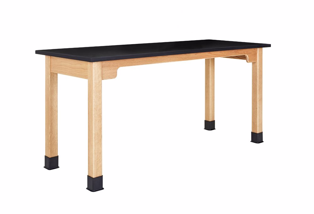Plain Apron Tables are available in a variety of sizes, with several different top materials. These tables are built for years of dependable service. Legs and aprons are constructed of solid red oak, and are smoothly machined. They are finished with a chemical resistant, earth-friendly UV finish. Aprons are constructed of solid red oak and are 13/16"Dx4-1/2"H with heavy-duty 13-gauge steel corner braces. 2-1/4" square solid oak legs, with 5/16" hanger bolts installed, are attached to apron with nuts and washers supplied. All tables are equipped with non-skid adjustable glides for precise leveling and for prevention of rocking on uneven floors. Tables are supplied with black rubber leg boots which offer protection against scuffing and chemical spills. Standard table height is 30" with a weight capacity of 500 lbs. (Shipped KD with tops attached)