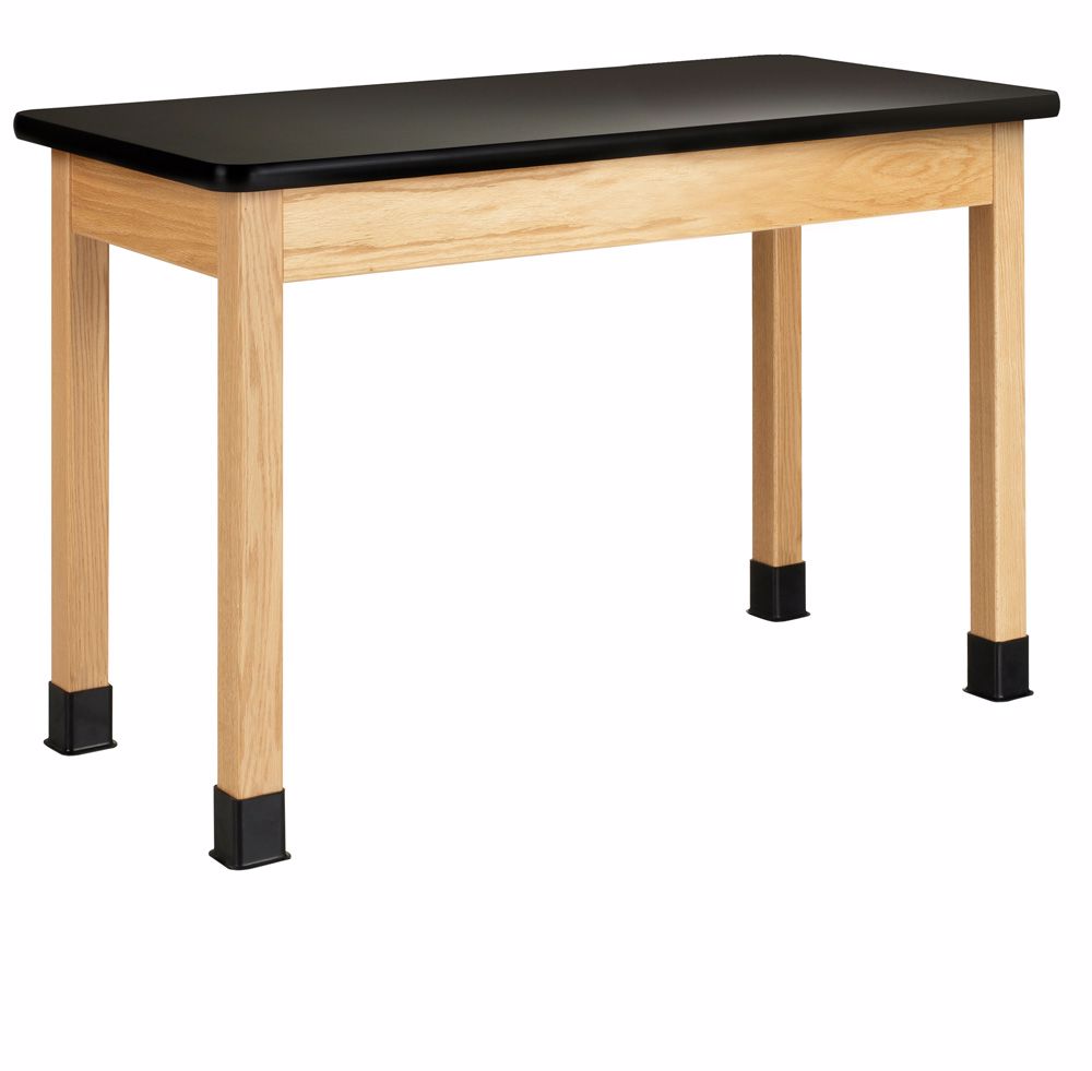 Plain Apron Tables are available in a variety of sizes, with several different top materials. These tables are built for years of dependable service. Legs and aprons are constructed of solid red oak, and are smoothly machined. They are finished with a chemical resistant, earth-friendly UV finish. Aprons are constructed of solid red oak and are 13/16"Dx4-1/2"H with heavy-duty 13-gauge steel corner braces. 2-1/4" square solid oak legs, with 5/16" hanger bolts installed, are attached to apron with nuts and washers supplied. All tables are equipped with non-skid adjustable glides for precise leveling and for prevention of rocking on uneven floors. Tables are supplied with black rubber leg boots which offer protection against scuffing and chemical spills. Standard table height is 30" with a weight capacity of 500 lbs. (Shipped KD with tops attached)