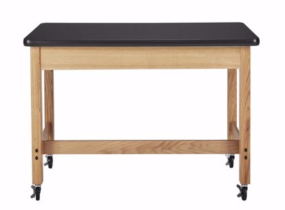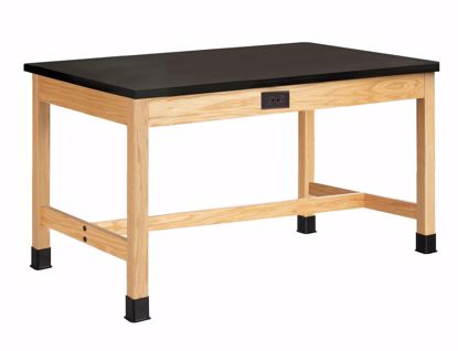 Plain Apron Tables are available in a variety of sizes, with several different top materials. These tables are built for years of dependable service. Legs and aprons are constructed of solid red oak, and are smoothly machined. They are finished with a chemical resistant, earth-friendly UV finish. Aprons are constructed of solid red oak and are 13/16"Dx4-1/2"H with heavy-duty 13-gauge steel corner braces. 2-1/4" square solid oak legs, with 5/16" hanger bolts installed, are attached to apron with nuts and washers supplied. All tables are equipped with non-skid adjustable glides for precise leveling and for prevention of rocking on uneven floors. Tables are supplied with black rubber leg boots which offer protection against scuffing and chemical spills. Standard table height is 30" with a weight capacity of 500 lbs. (Shipped KD with tops attached)