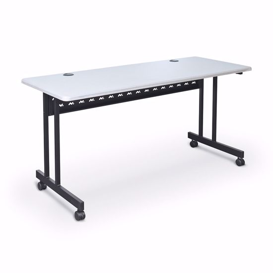 Use lightweight and economical Task Training Tables for your training room, classroom, or any other group learning environment. Available in two sizes (60" and 72"), the tables feature a powder-coated black steel base with integrated modesty panel and 2" casters (two locking). Tops are 1" thick vacuum-formed PVC, available in cherry or gray nebula, and include grommets for cable management. Has achieved GREENGUARD GOLD Certification. Tested to support up to 300 lbs. TAA compliant.