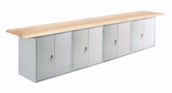 This series offers 1-3/4" maple tops and 4 bench lengths and 3 locker styles to choose from. The all-welded, 1-section construction has reinforced side panels (20-gauge). Locker doors (18-gallon) have air vents, spring hinges, padlock hasp & knockout plug for cylinder lock. Choose between vertical lockers, horizontal lockers or double door bases. Your choice of black or gray baked enamel finish. Counter tops need to be attached during assembly. 32-3/4"H.